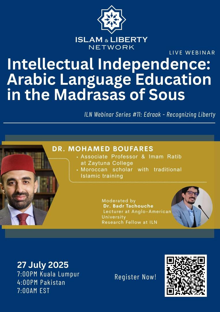 Islam and Liberty Network is delighted to unveil the latest instalment of "Edraak - Recognizing Liberty", our monthly series of public webinars to improve the understanding of the concept of liberty, its manifestations, and implications in theoretical, legal, and social contexts universally.